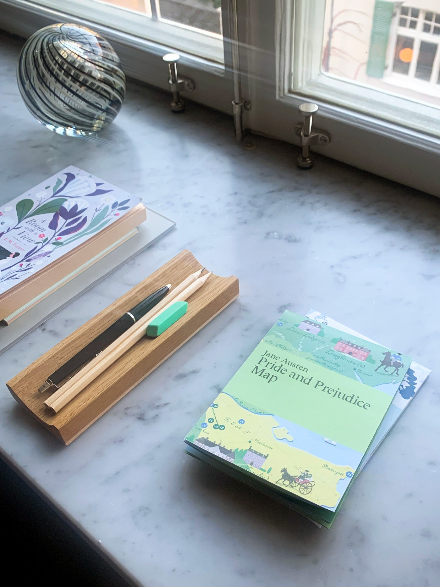 Jane Austen vividly describes many fictional and real locations throughout England in her classic novel from 1813. This map includes over 60 of these places and shows how they relate to each other. It also features an illustrated map of the novel’s main characters.